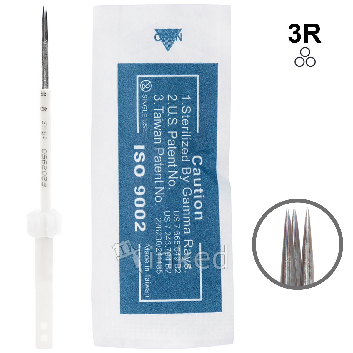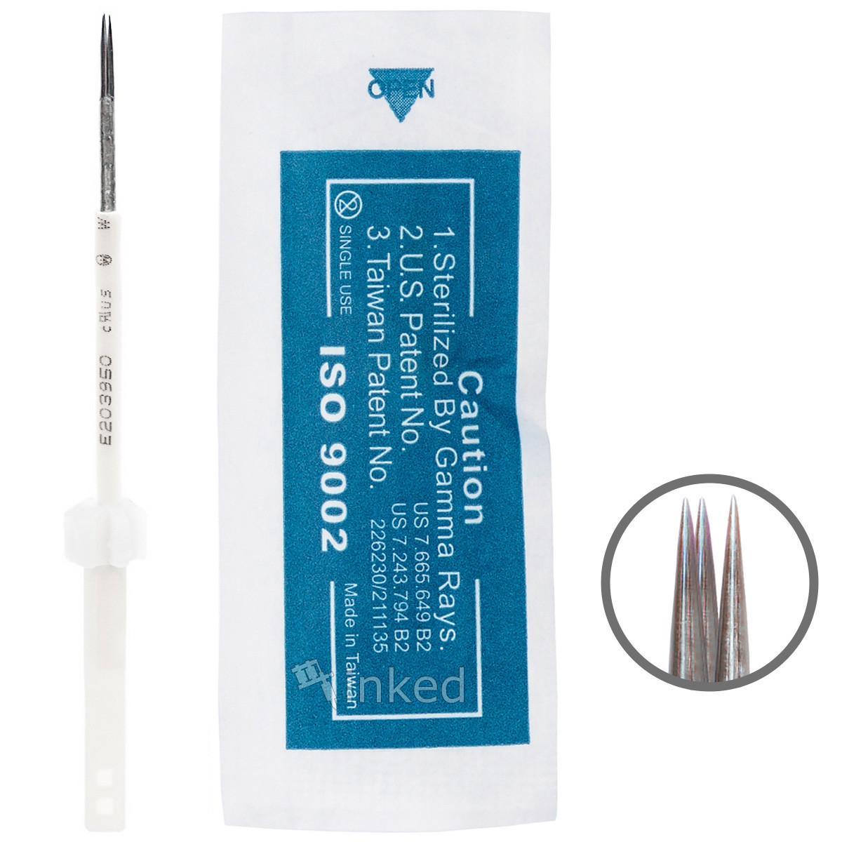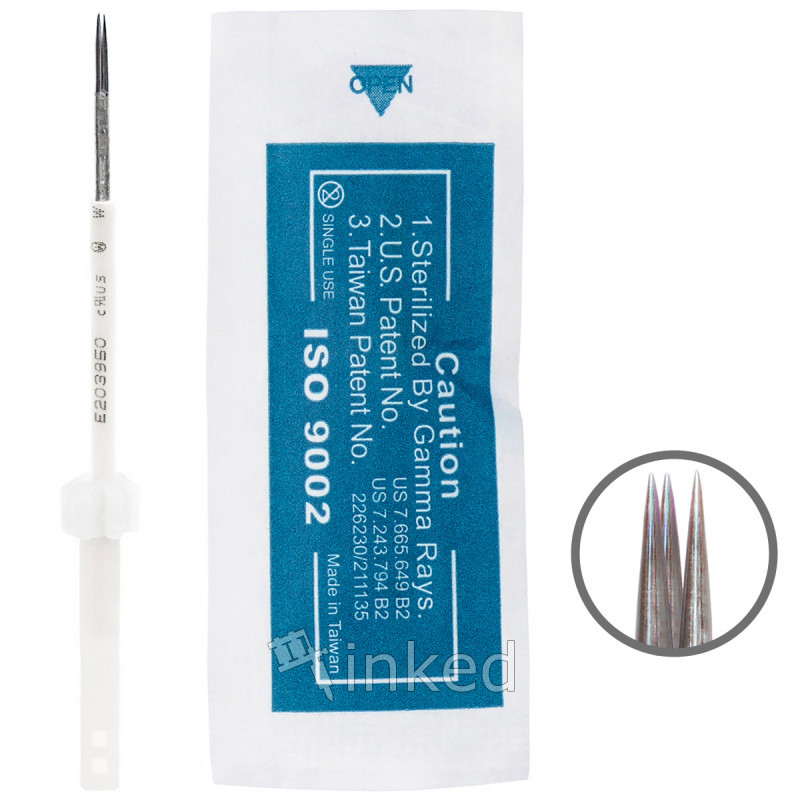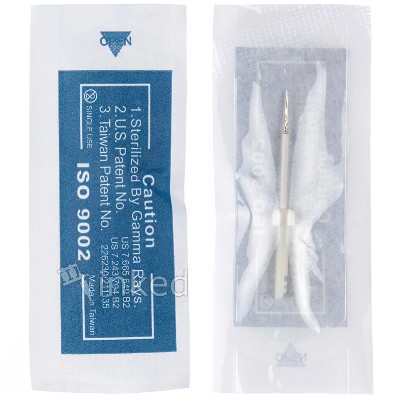 Голки проходять спеціальний етап стерилізації за допомогою гамма випромінювання. Після цього виріб пакується в герметичний стерильний контейнер. Дана голка використовується в основному для нанесення контуру повік і губ, а також реалізації межреснічной техніки.