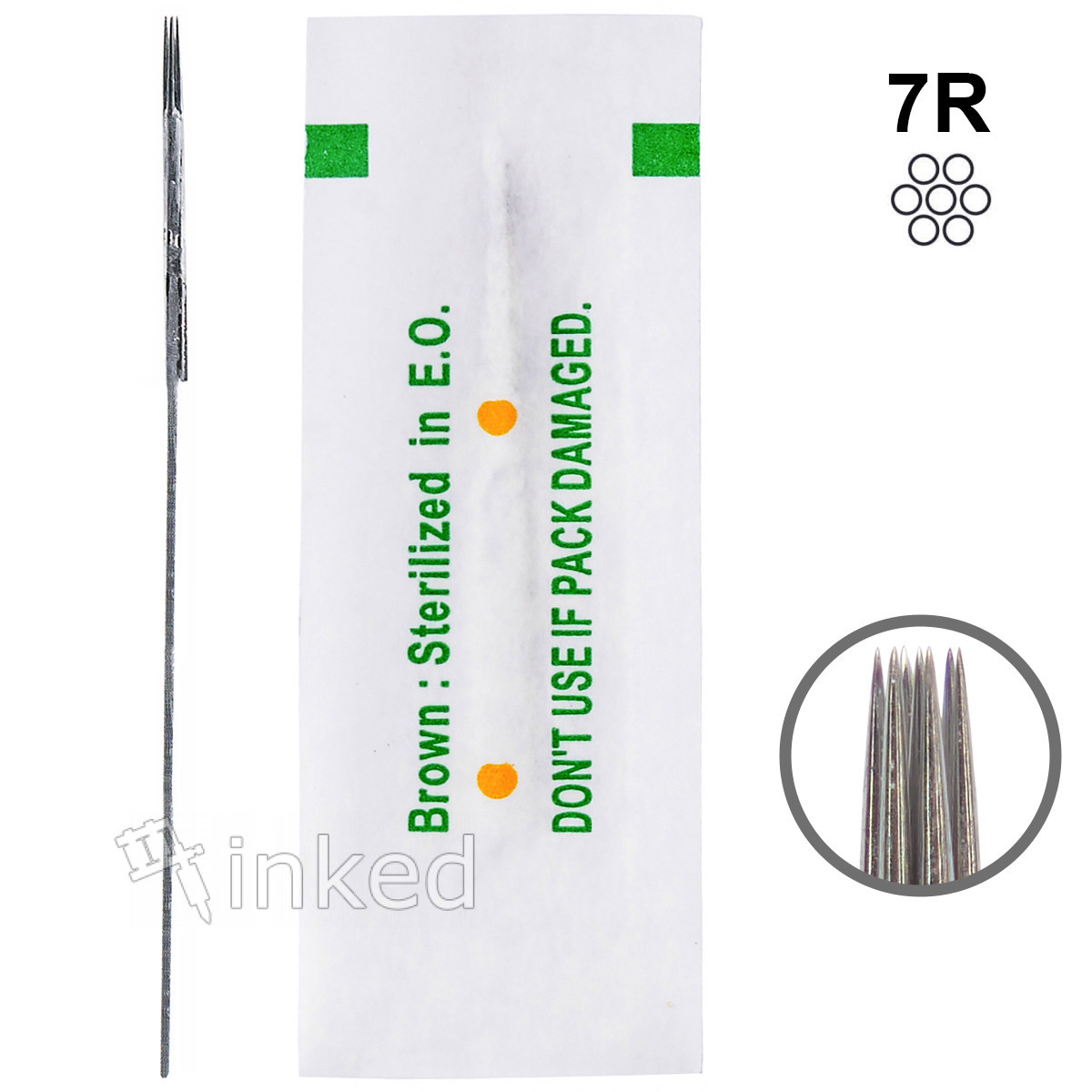 Стерилізовані голки 7R Universal для татуажних машинок – долассіческіе Контурні голки для татуажу. Кожна голки пройшла стерилізацію гамма випромінюванням і упакована в індивідуальну упаковку. Підходять для машинок Goochie ZX2010/2011, Giant Sun g 8650/9740.