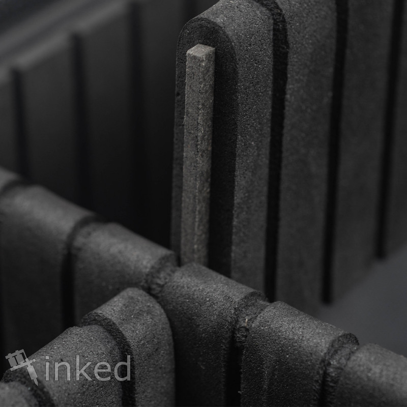 Кришка нижнього відсіку складається з 7 тканинних вертикальних осередків, які ідеально підійдуть для розміщення пігментів.