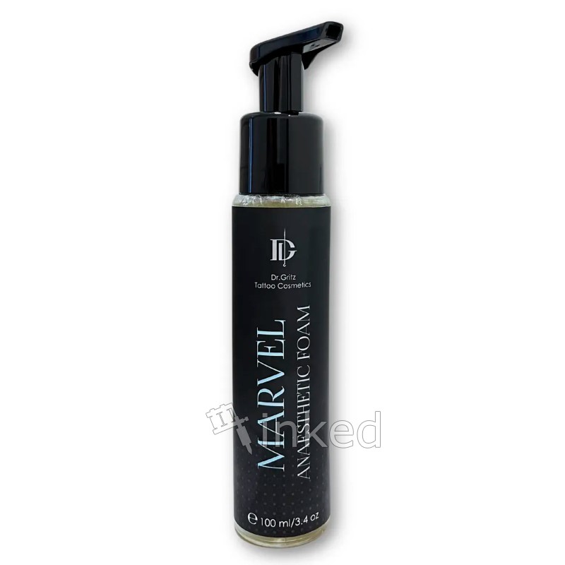 Антибактеріальна знеболювальна піна Marvel Tattoo Soap призначена для зовнішнього застосування: добре очищає тату від залишків фарби і вазеліну, а також заспокоює шкіру, забезпечує комфорт для вашого клієнта під час сеансу татуювання.