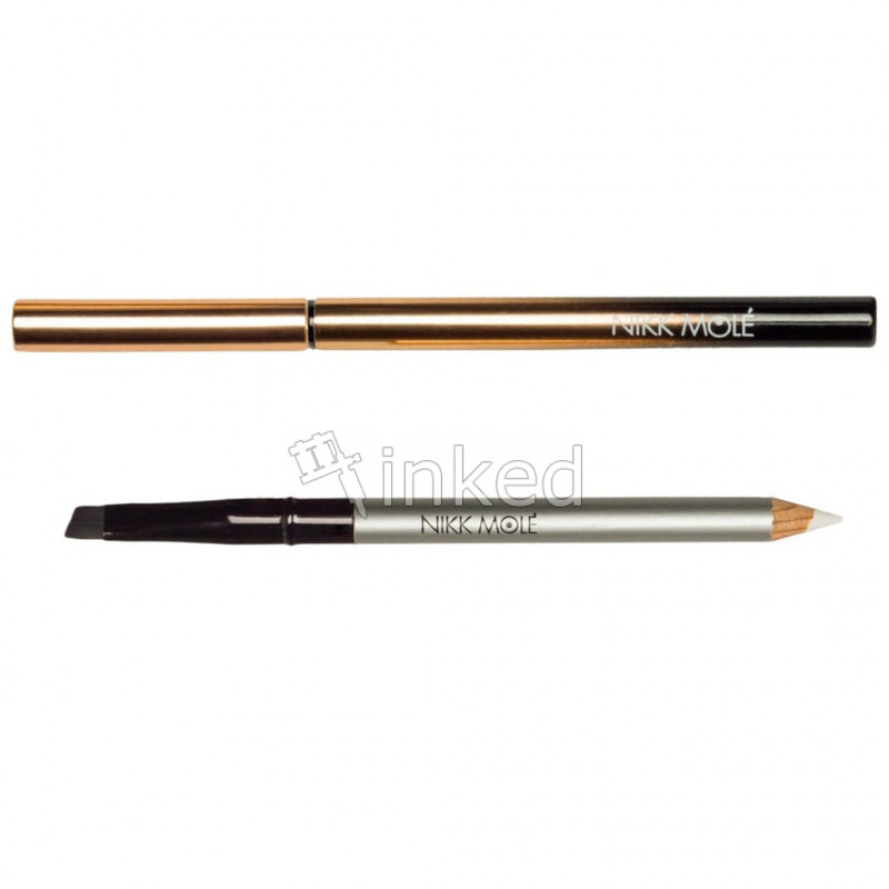 Олівець в золотому футлярі зі зручною скошеною пензлем для нанесення і розтушовування.