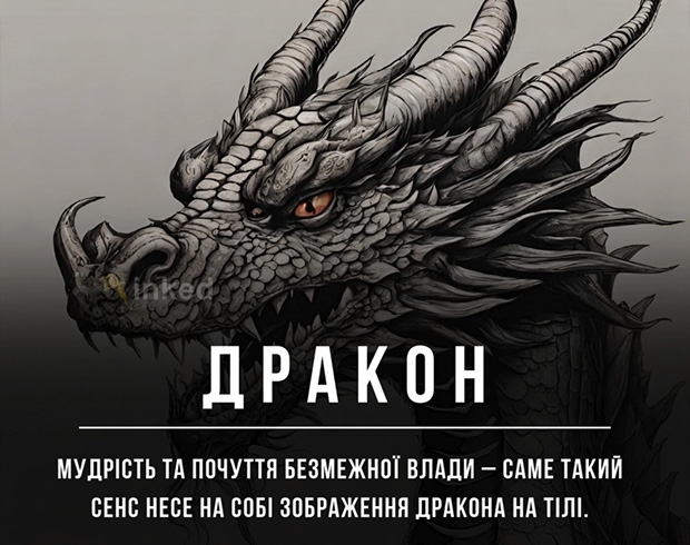 - Дракон: Дракон символізує могутність, мудрість, силу та захист. У багатьох культурах, особливо в азійських, дракони є покровителями, що приносять удачу та захищають від злих сил.