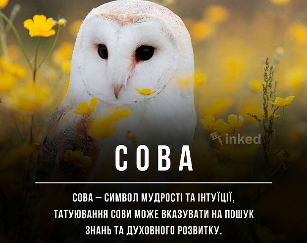 - Сова: Символ мудрості та інтуїції, сова асоціюється з ніччю і прихованим знанням.