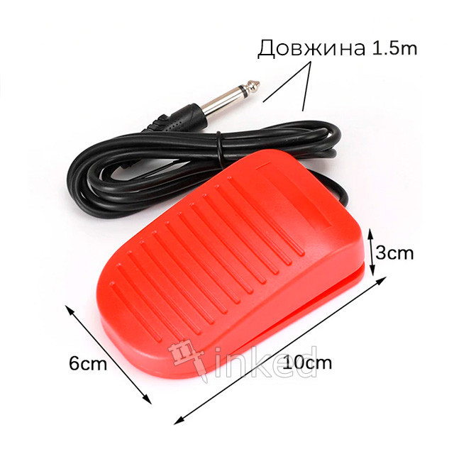 Педаль для роботи з блоком живлення (роз'єм 6.35 mm) - зручна ножна педаль з міцного пластику, яка є пусковим пристроєм для татуажної машинки, що приєднується до блоку живлення. Ця педаль має пластикові протектори проти ковзання, що забезпечує комфортну роботу майстру татуажу. Педаль має гнучкий дріт і стандартний джек, що дає змогу під'єднати її до будь-якого стандартного блоку живлення для татуажних машинок.