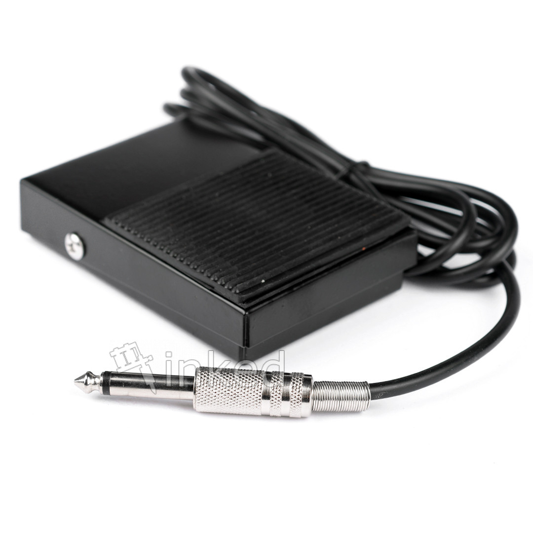 Прогумована педаль для роботи з блоком живлення – це елемент, без якого не обходиться жодна процедура нанесення тату. Виріб є доповненням до татуювальної машинці. Воно істотно спрощує роботу майстра, дозволяючи йому оперативно запускати і зупиняти рухи голки, в разі потреби. При цьому не буде необхідності в залученні рук. Педаль, перш за все, необхідно приєднати до електричного кола: по одну сторону розташований блок живлення, по іншу – татуювальна машинка. Голка для татуювань приводиться в рух після здійснення натискання на педаль.