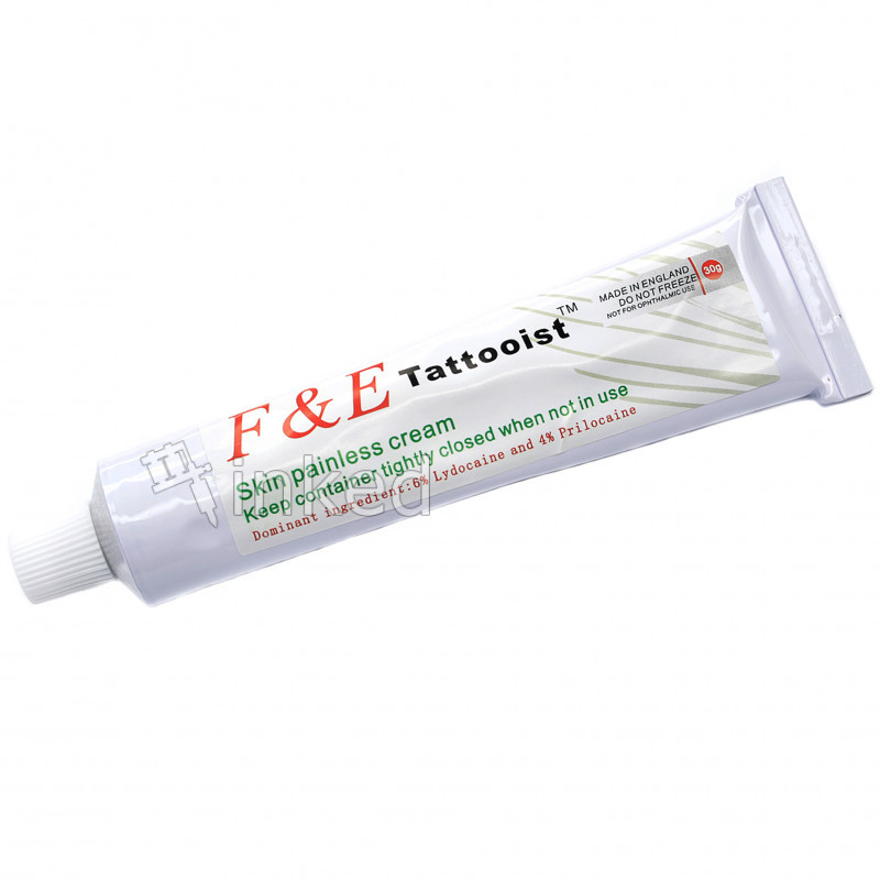 Первинна анестезія F&E Tattooist (30g) - сучасний ефективний анестетик, що користується великою популярністю сьогодні. У складі крему присутній епініфрін, який безпосередньо впливає на звуження судин. Це дає можливість продовжити дію анестезії, а також зменшити набряклість. Таку анестезію часто використовують тату майстри в ході робочого процесу з метою знеболити місце, де планується татуювання.