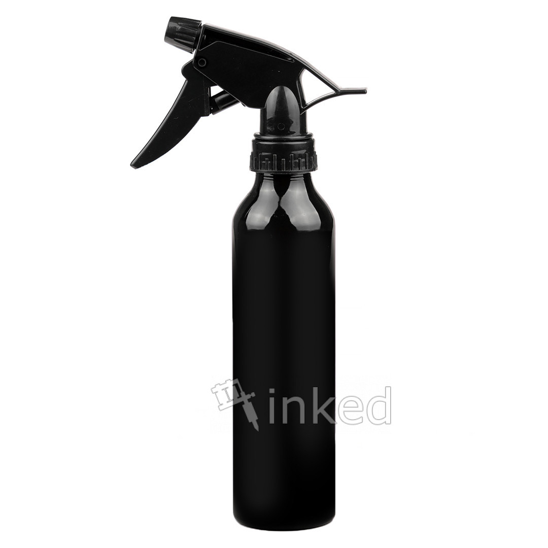 Алюмінієвий спрей-батл - це чудовий інструмент для якісної роботи тату-майстра . Забезпечує рівномірний Дисперсійний потік у вигляді туману. Колба розпилювача виготовлена з високоякісного алюмінієвого сплаву, завдяки чому аксесуар не деформується при створенні тиску необхідного для якісного розпилення. Спрей-батл оснащений соплом дозволяє регулювати розпорошується туман від найдрібніших до більших крапель, що дозволяє легко підлаштуватися під роботу для кожного клієнта. Розпилювач має зручну для розташування в руці, ергономічну форму. Може бути використаний для рідкого мила, омивання шкіри водою в процесі роботи та ін.
