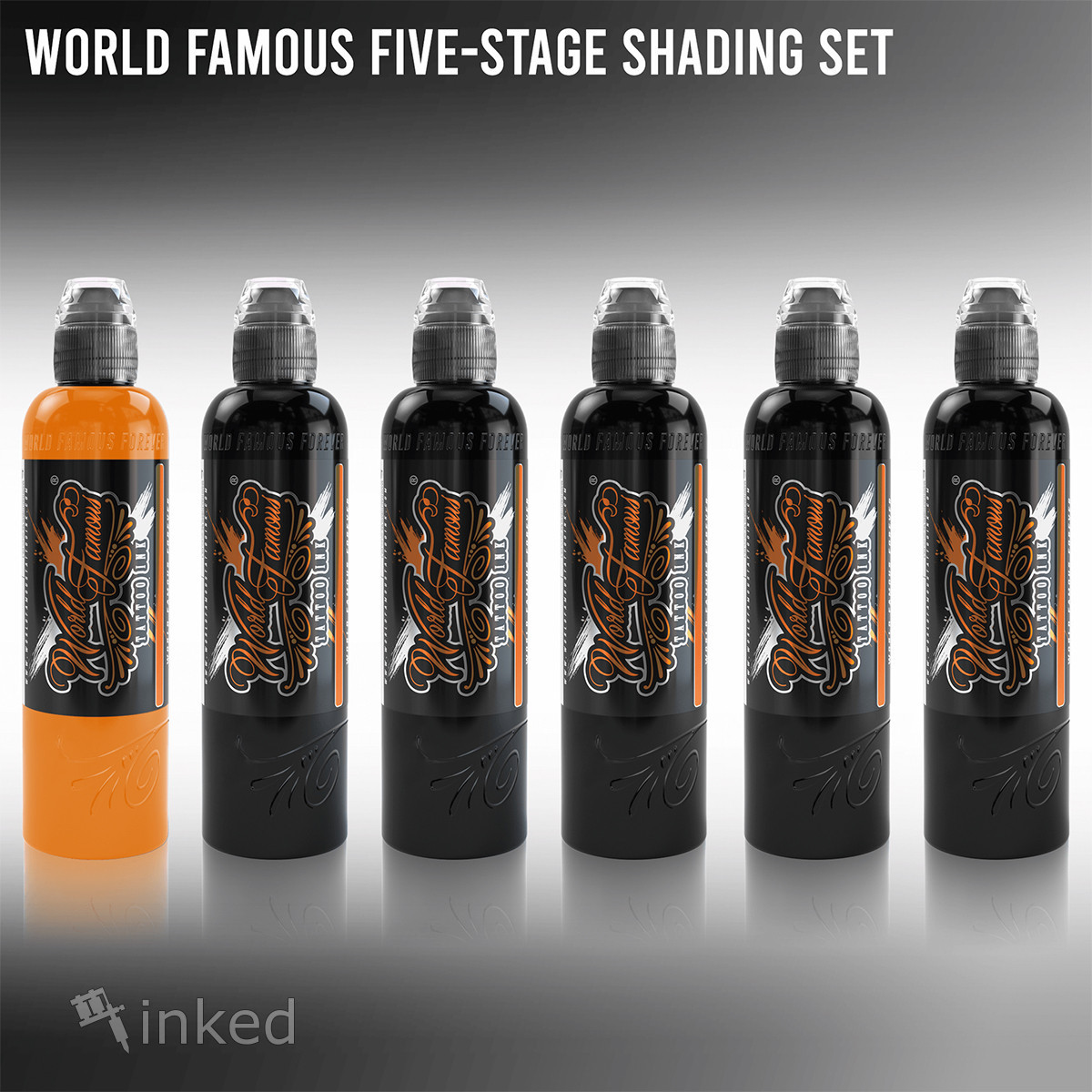 SET – 30 ml World Famous [5 Stage Shading]-набір тату-фарб нового покоління, який відомий своєю бездоганною якістю вже більше 50-ти років. Це тіньові пігменти, призначені спеціально для розтушовування. Це один з кращих продуктів в татуювальній промисловості. Інноваційна формула створення фарби дозволяє зробити пігмент густим і щільним, не піддаватися впливу променів ультрафіолету. Стерилізація тату-фарб здійснюється з використанням гамма-радіації.