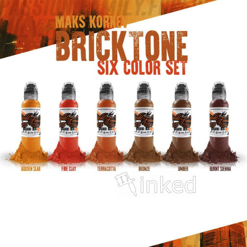 Колірна палітра складається з коричневих, помаранчевих і червоних відтінків. Якість пігментів відповідає всім європейським стандартам і вимогам. Даний набір американського відомого виробника істотно спростить роботу тату фахівця. Кожен флакон виконаний в стильному дизайнерському оформленні. Кожен колір можна змішувати з будь-яким іншим відтінком, щоб розширити колірну палітру.