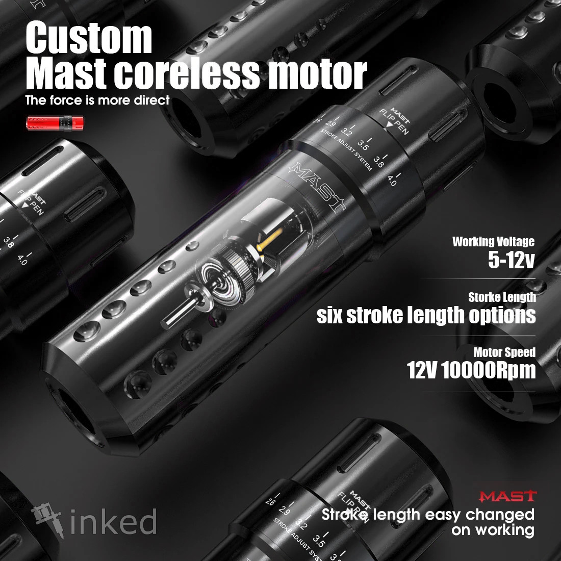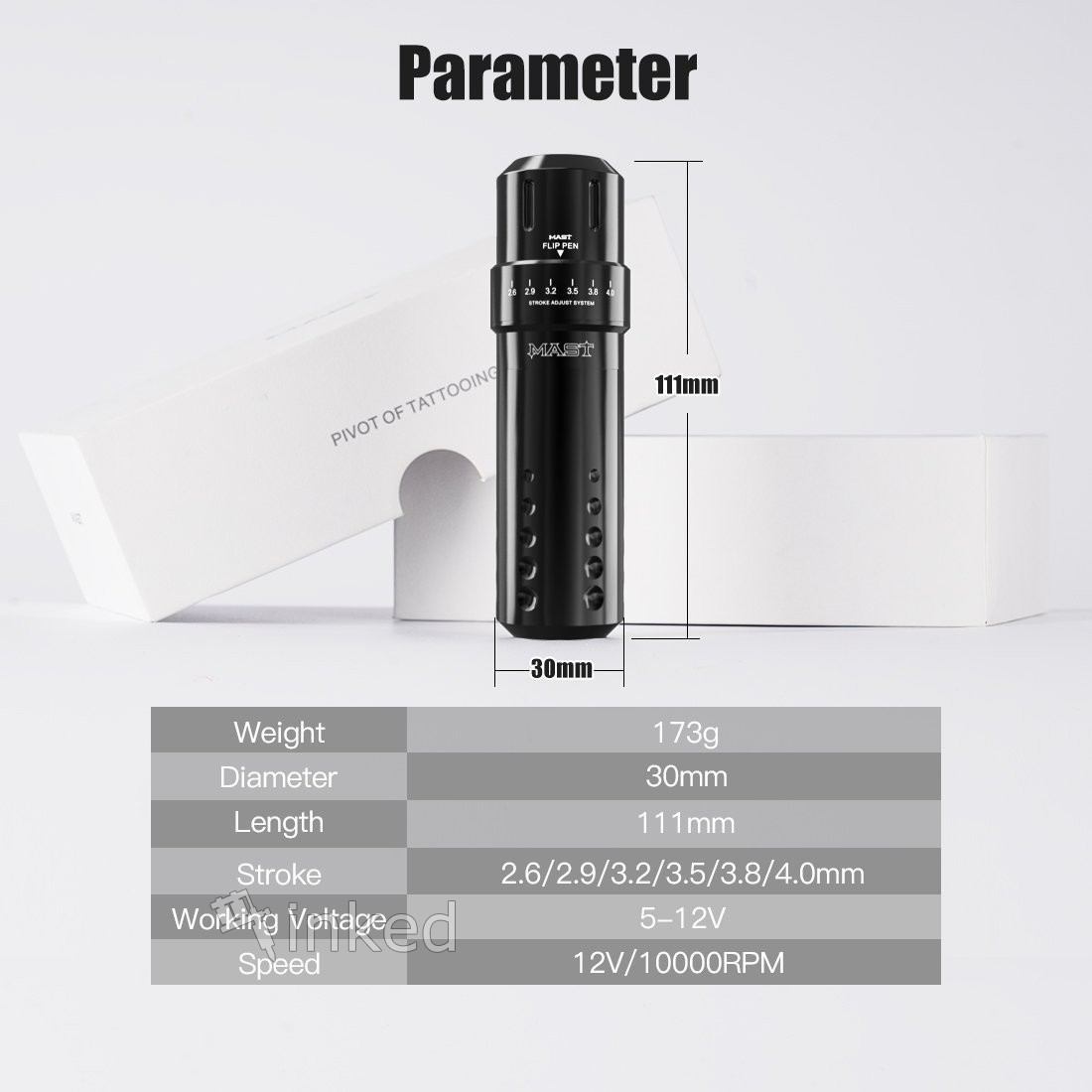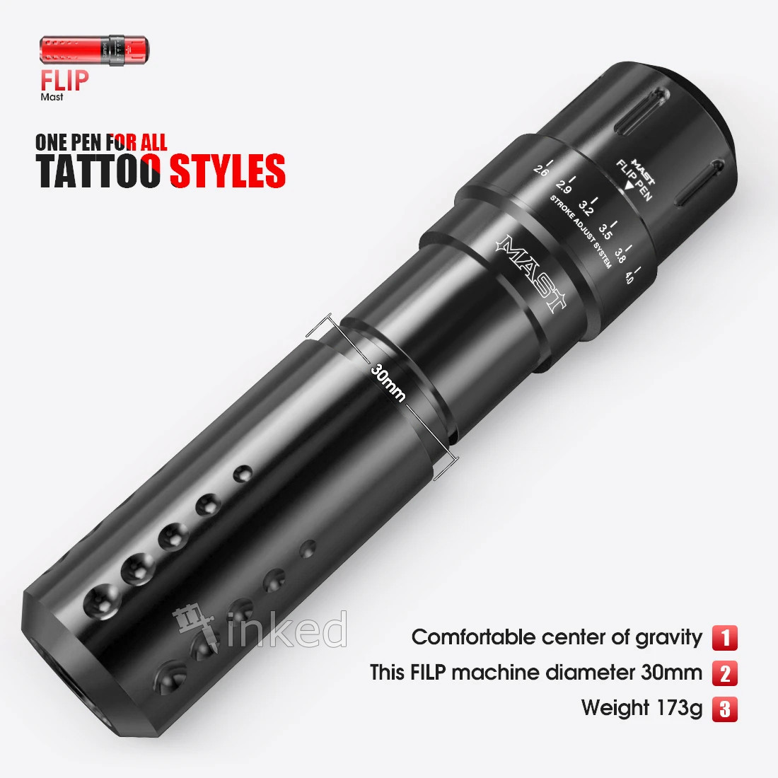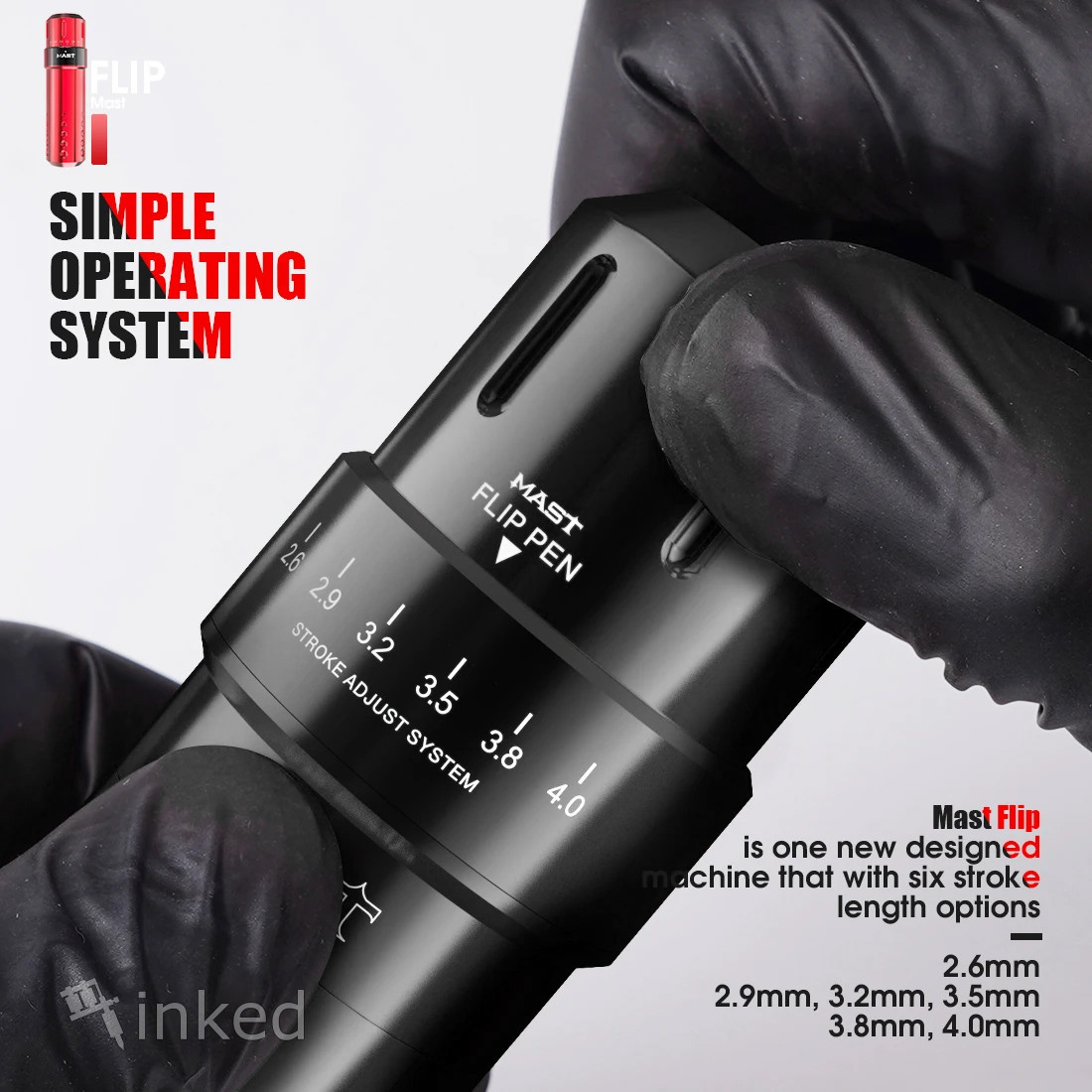 Dragonhawk MAST Flip - це нова тату машинка з шістьма варіантами довжини ходу: 2,6 мм, 2,9 мм, 3,2 мм, 3,5 мм, 3,8 мм, 4,0 мм для широкого спектра робіт. Підходить для всіх стилів татуювань - контурів, тіней, повного зафарбовування. Невеликі габарити машинки дають змогу майстрам працювати нею в бар'єрному захисті, а ергономічний дизайн допомагає знизити стомлюваність рук під час процедур. Низький рівень вібрації та шуму, а також висока стабільність роботи роблять Dragonhawk MAST Flip однією з найпривабливіших машинок на ринку.