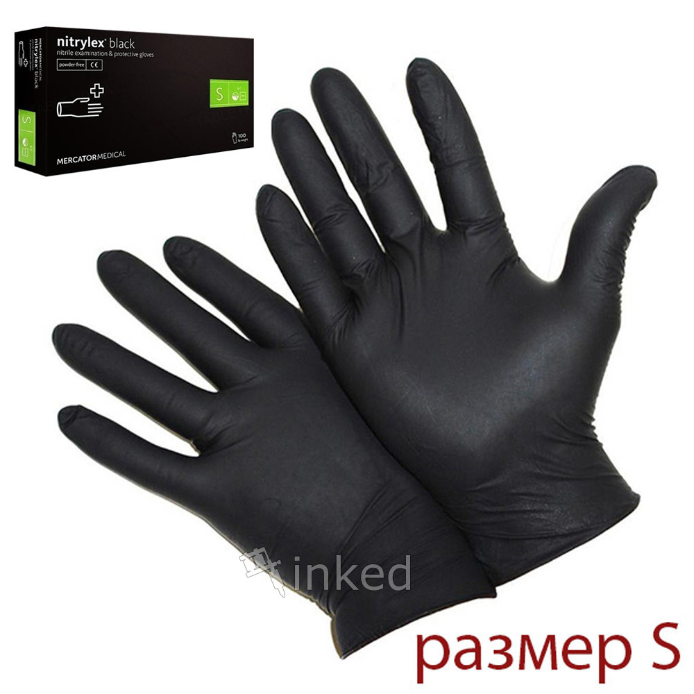 Упаковка рукавичок Nitrylex Mercator S (чорні 50 пар)