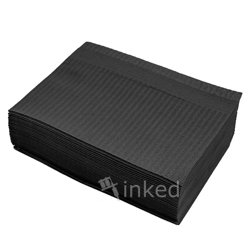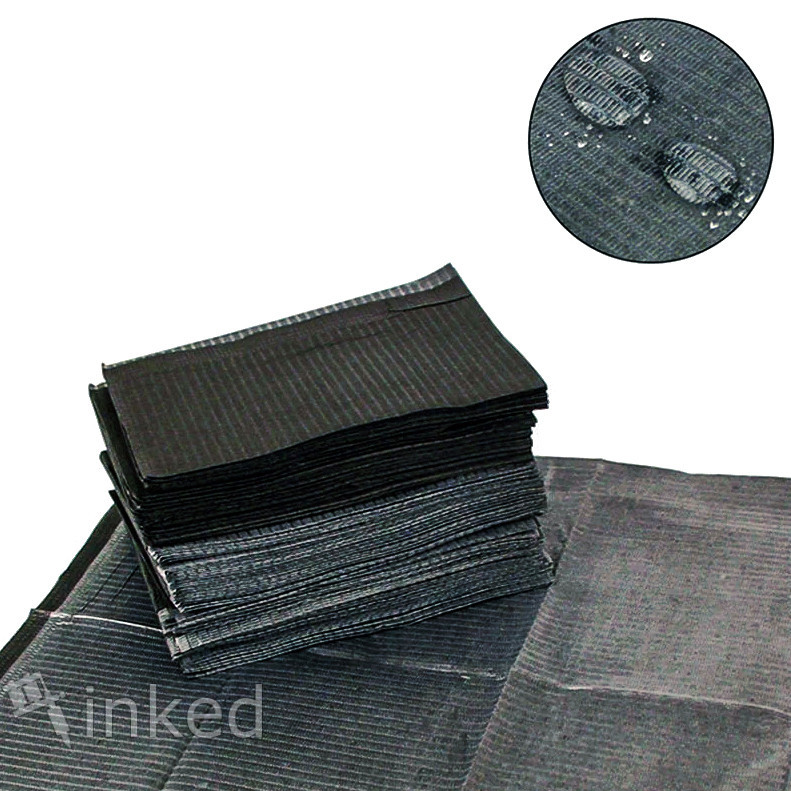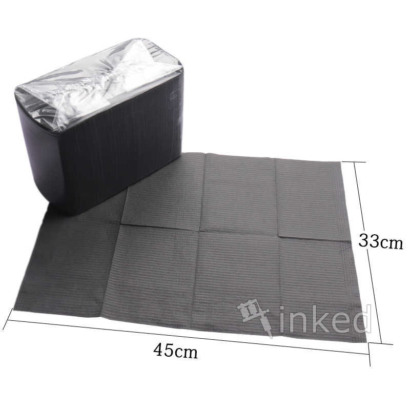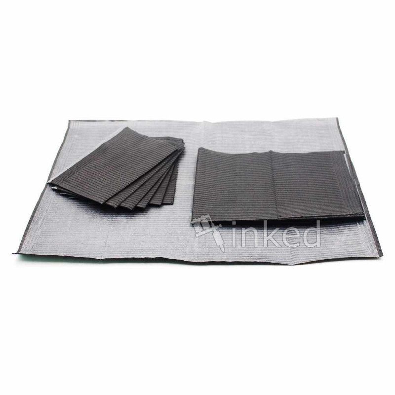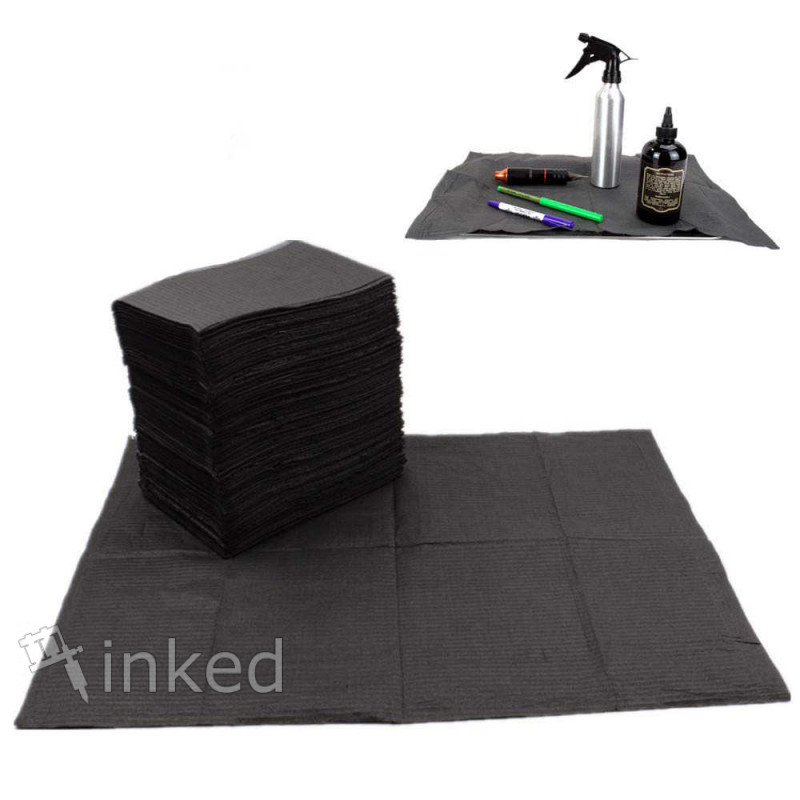 Вкрай практичні Килимки для тату інструменту, ковпачків, вазеліну і т.д., з чистої целюлози, володіють хорошими абсорбуючими властивостями, поєднуються з шаром поліетиленової фольги, непромокаємі.