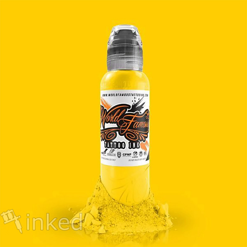 World Famous Canary Yellow- яскравий жовтий, теплий колір. Рідкий пігмент, можна додати білий для отримання ефекту напівпрозорості. Ця фарба для татуювання 100% стандартного жовтого кольору-в системі CMYK (для тих хто шарить) - він буде 0,0,100,0. Основний колір, неможливо намішати іншими кольорами, тату пігмент обов'язково повинен бути в твоїй палітрі! Це якісна американська тату Фарба з високим вмістом пігменту. Легко вбивається і добре заживає.