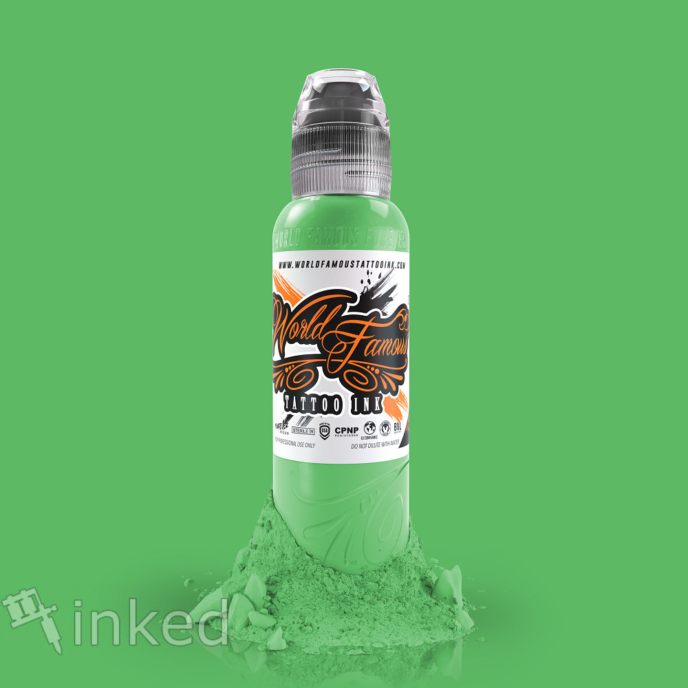 Яскравий і насичений зелений Ireland Green від World Famous Tattoo Ink. Якщо ви зібралися робити лепрікона або просто фанат цієї країни, то цей пігмент для вас. Тон-холодний. Це якісна американська тату Фарба з високим вмістом пігменту. Легко вбивається і добре заживає.