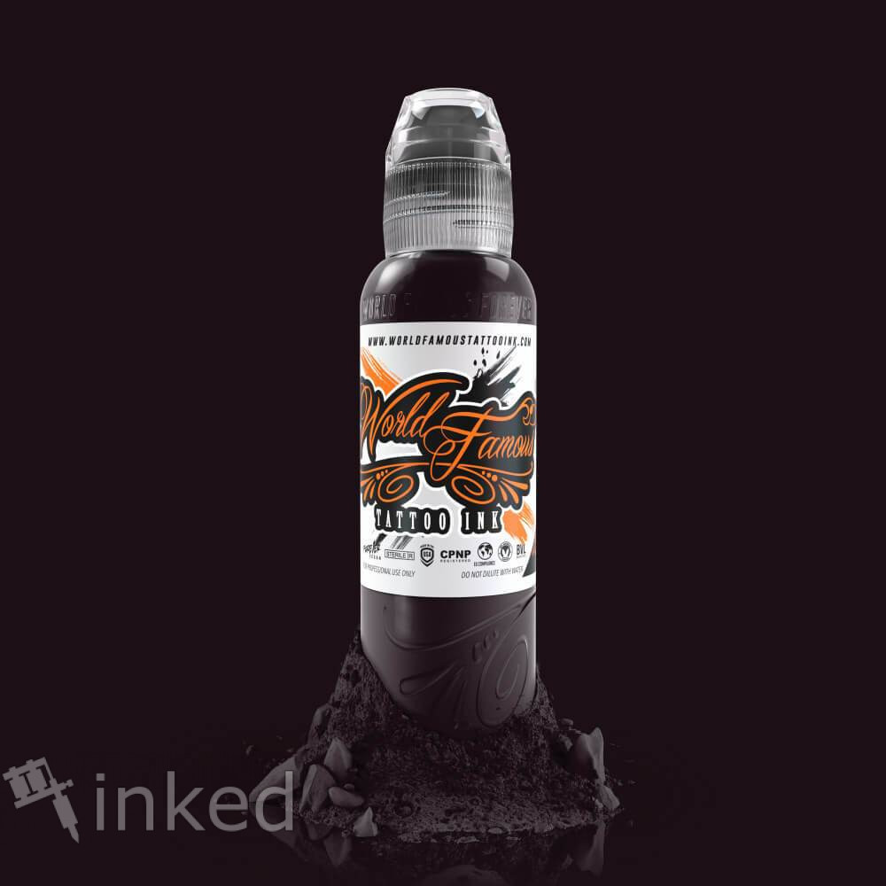 Plumb Island Black- дуже темний, що переходить в чорний, фіолетовий колір від World Famous Tattoo Ink. Насичений чорний колір з красивим ліловим відтінком. Це теплий чорний колір. Це якісна американська тату Фарба з високим вмістом пігменту. Легко вбивається і добре заживає.
