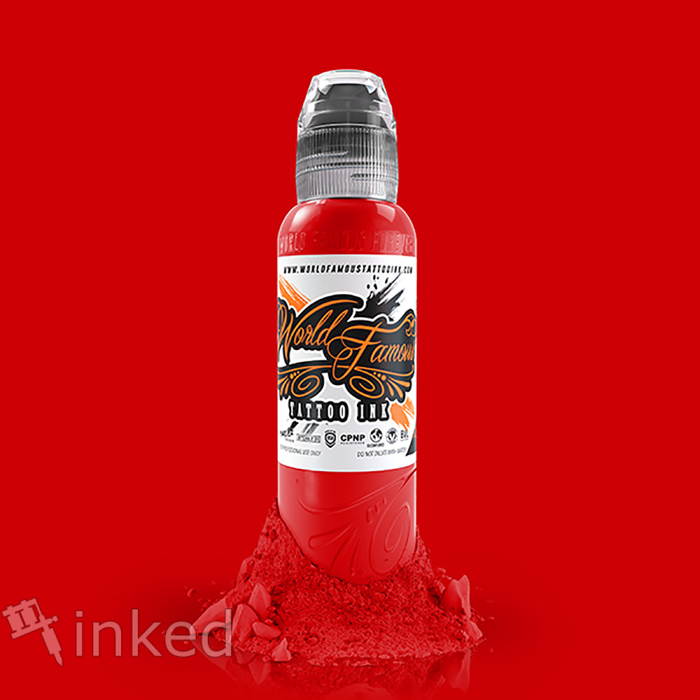 Red Hot- рубіново-червоний колір від World Famous Tattoo Ink. Тату пігмент з відтінком яскраво-червоного кольору перцю чилі. Пігмент підходить також і для перманентного макіяжу. Після загоєння колір залишається насиченим, не світлішає і не йде. Це якісна американська тату Фарба з високим вмістом пігменту. Легко вбивається і добре заживає.