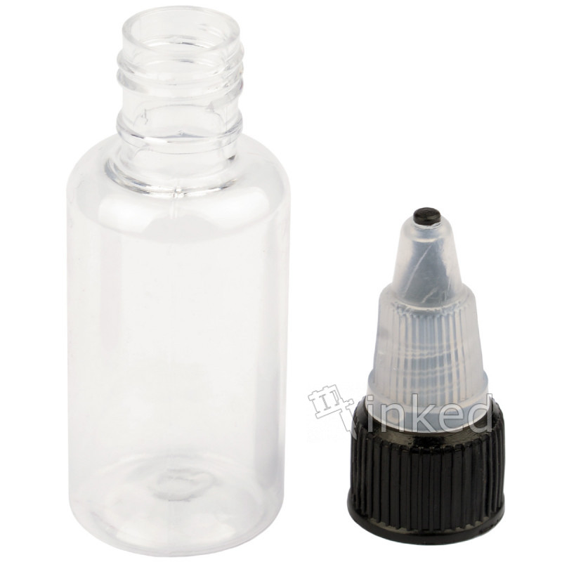 Ємність для рідини 15 мл – порожня тара, виготовлена з висококласного безпечного пластика, що використовується під розлив пігменту і фарби для татуювань. Медичний пластик відрізняється м'якістю, матеріал комфортний при натисканні на нього, абсолютно не токсичний. Під кришкою знаходиться спеціальна піпетка, за допомогою якої пігмент можна наливати дозовано по краплях. Флакон доступний для багаторазового використання. Знімний дозатор дозволяє наповнити флакон необхідною кількістю пігменту. У такій ємності можна зберігати і дозувати тату фарби, які повинні завжди бути у майстра під рукою.