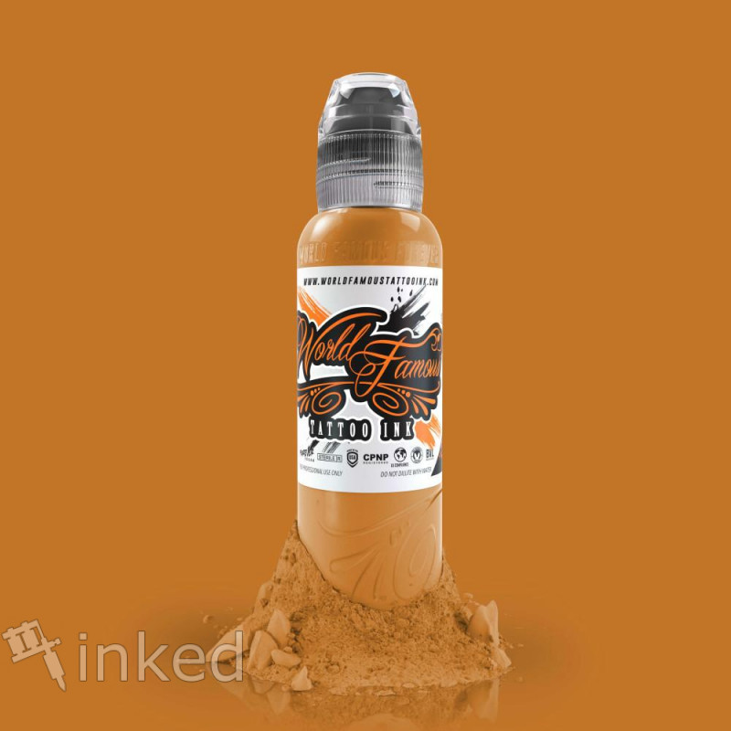 Насыщенный желто-коричневый цвет Botticelli Brown от World Famous Tattoo Ink. Мягкий тон. Лёгкий карамельный оттенок. Жидкий пигмент. Это ка...