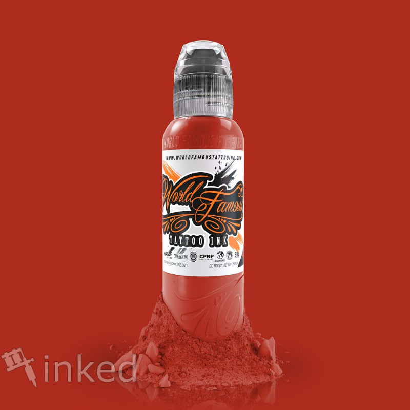 Red Hot Chili Pepper – красно-оранжевый, терракотовый цвет кирпичной крошки. Довольно густой пигмент. Это качественная американская тату краска с высоким содержанием пигмента. Легко вбивается и хорошо заживает.