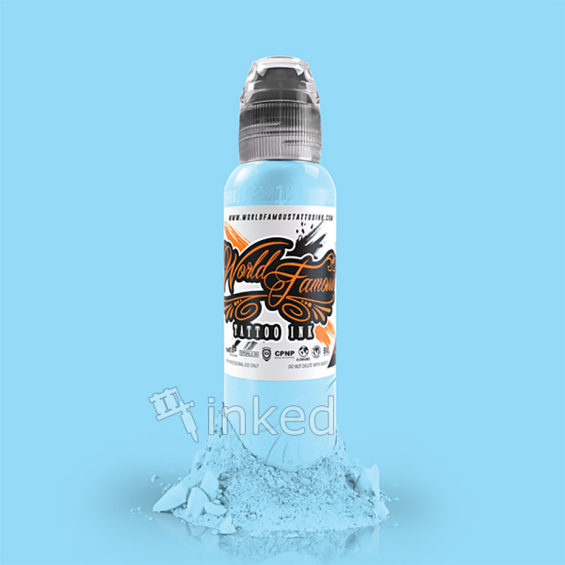 Sinatra Blue – молочно-голубой, светлый, искрящийся цвет от World Famous. Обладает лёгкой текстурой, не густой. Это качественная американская тату краска с высоким содержанием пигмента. Легко вбивается и хорошо заживает.
