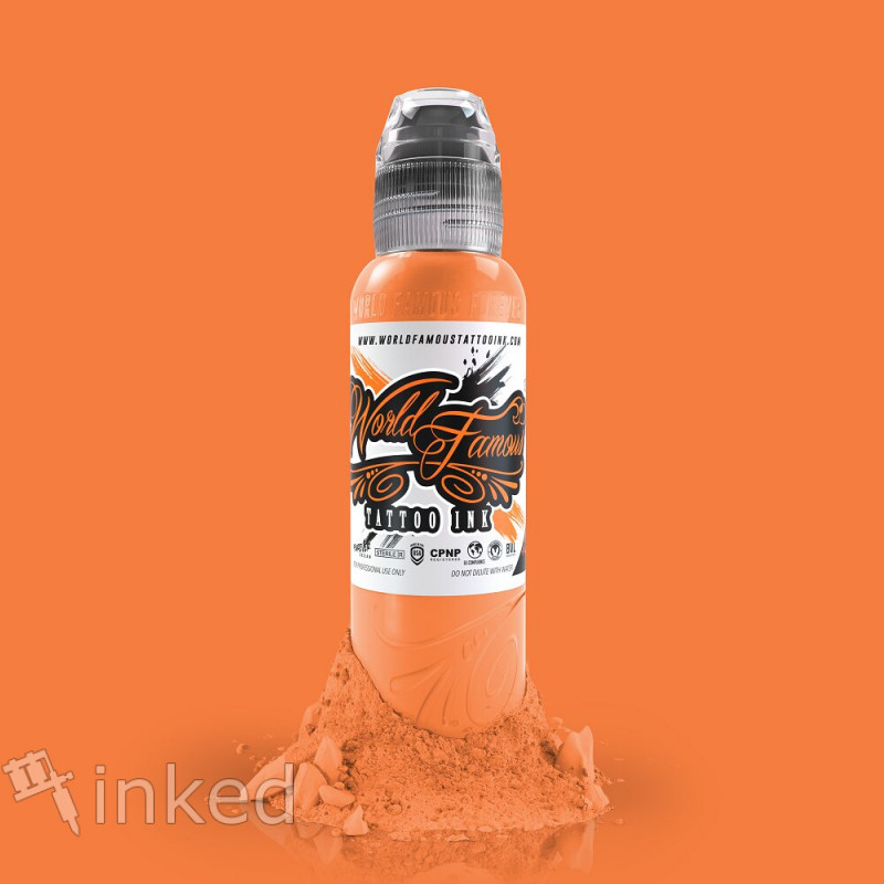 Thailand Sunset – светло-оранжевый, цвет спелого абрикоса. Мягкий оттенок с добавлением белого. Пастельный оранжевый цвет от World Famous. Это качественная американская тату краска с высоким содержанием пигмента. Легко вбивается и хорошо заживает.